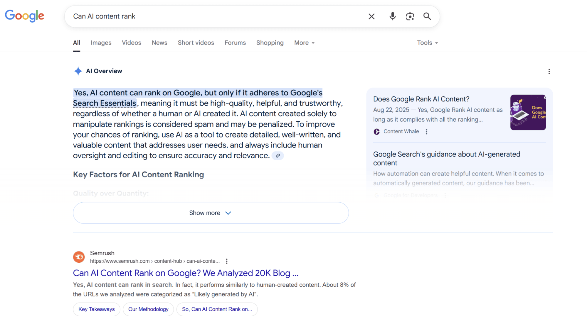 So, we analyzed 20,000 articles and published research on whether AI content can rank on Google.