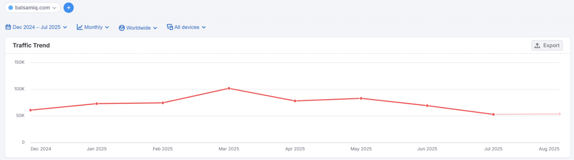 For example, Chargeblast (a Semrush client) has seen a downward trend in organic traffic, a challenge many websites are facing.