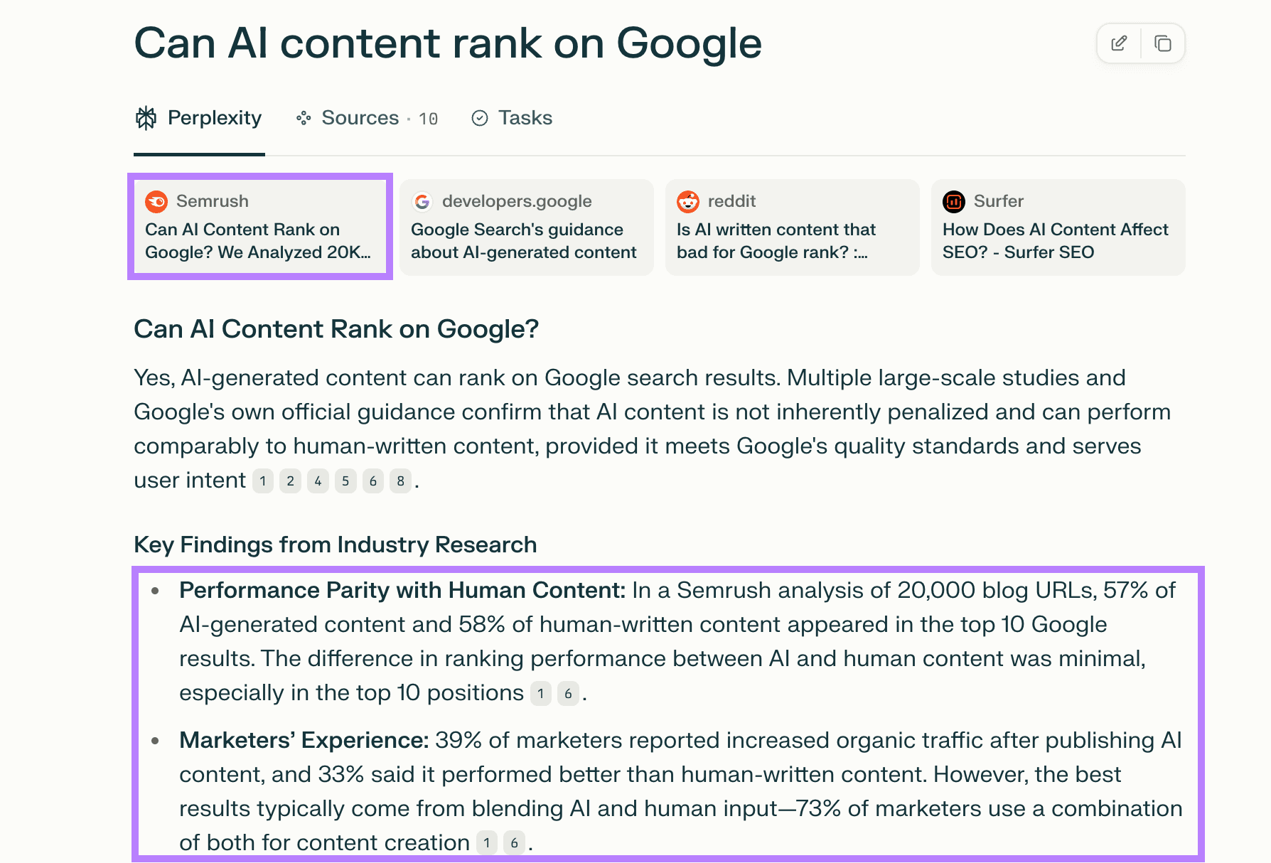 For example, Semrush’s sales specialists kept hearing "Will Google penalize my AI-generated content?" from prospects evaluating our AI writing tool.