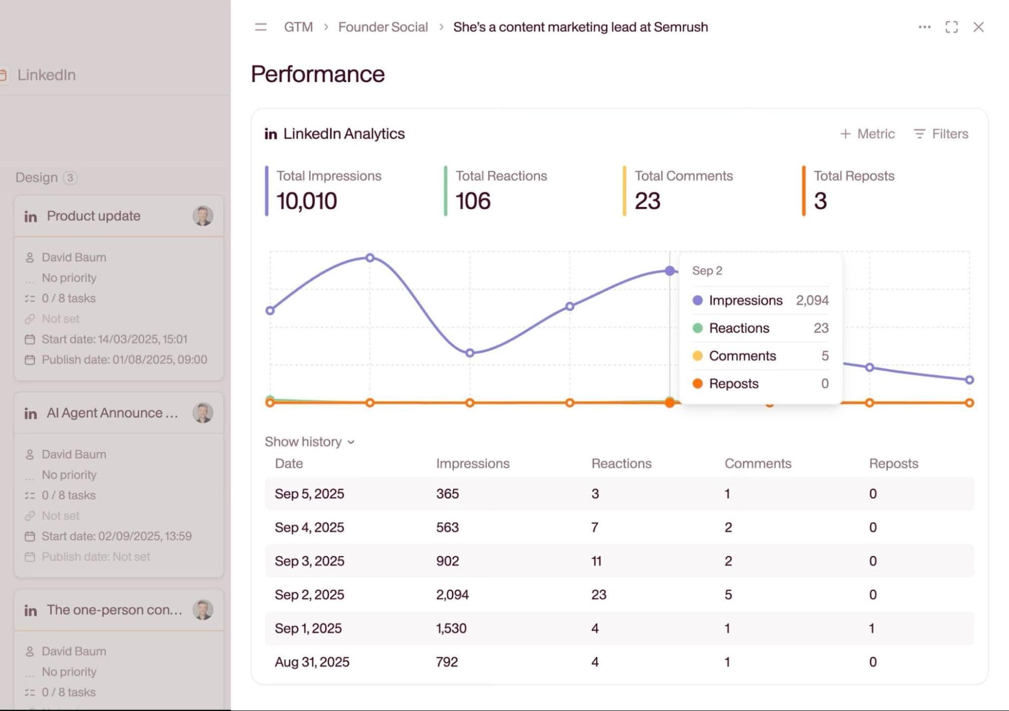 - Direct relationship building: DMs and connection requests generated by specific content pieces.