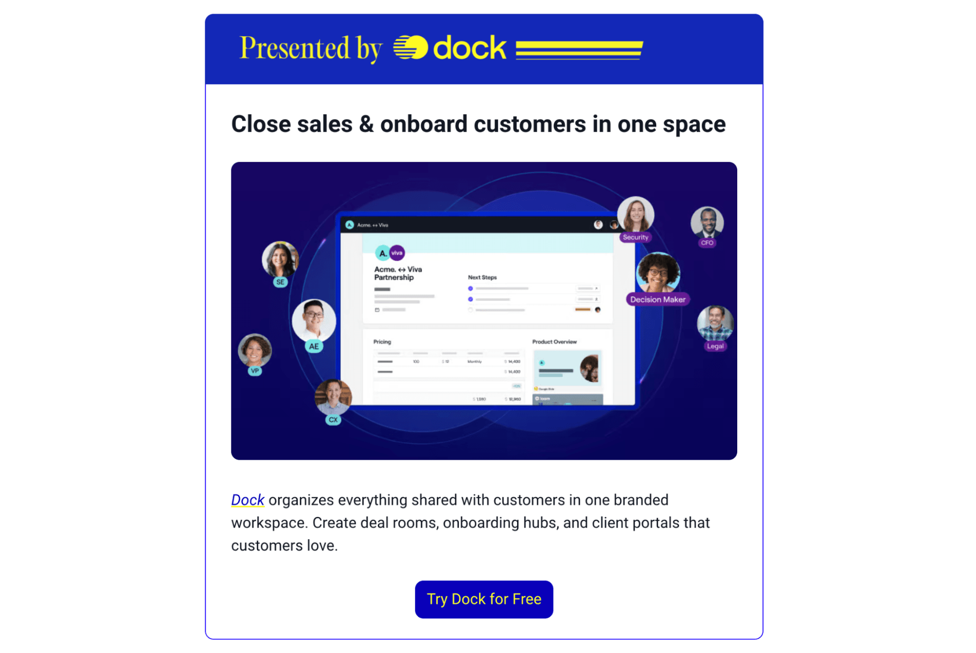 Eric Doty, Content Lead at Dock, built Dock’s Grow and Tell newsletter by tapping into the brand’s archive of 41+ podcast interviews.