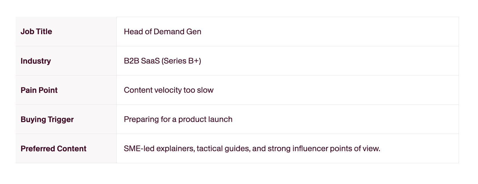 When your team aligns on your ICP, you can more easily identify SMEs and influencers who already resonate with that audience, making your outreach more efficient and your content more relevant.