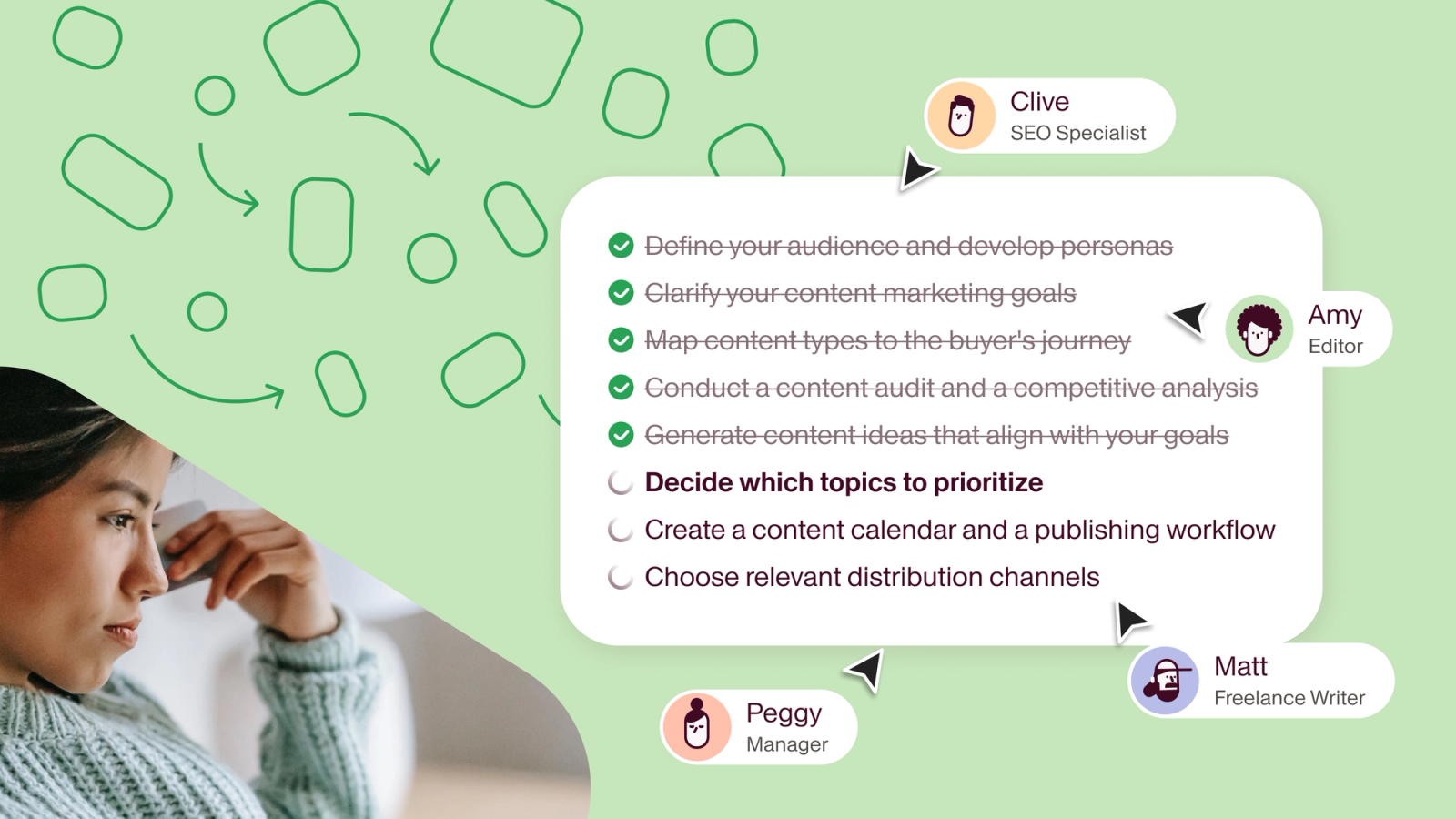 Think of your content strategy as a plan that details how your B2B brand will win. It considers how your brand can build authority, create value, and ultimately contribute to essential business goals.