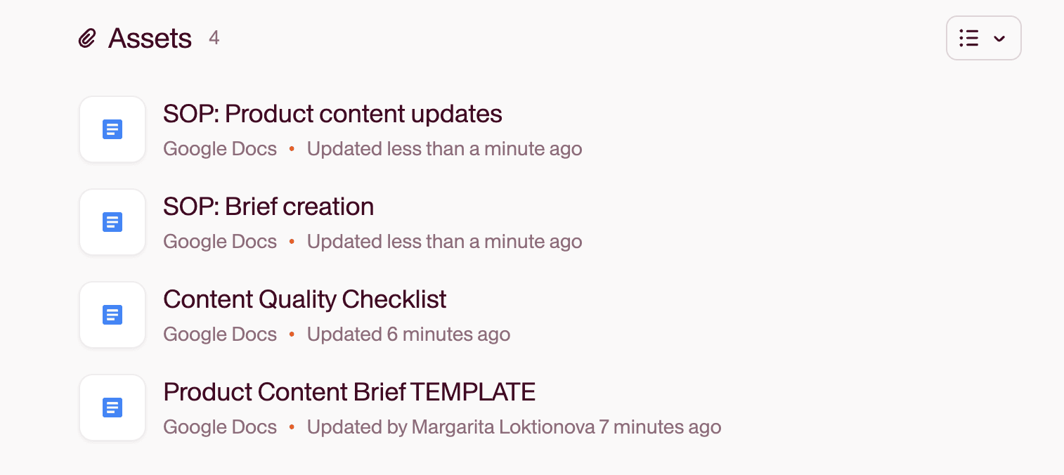 - Brief templates: Create standardized formats that make sure writers get all necessary information every time.