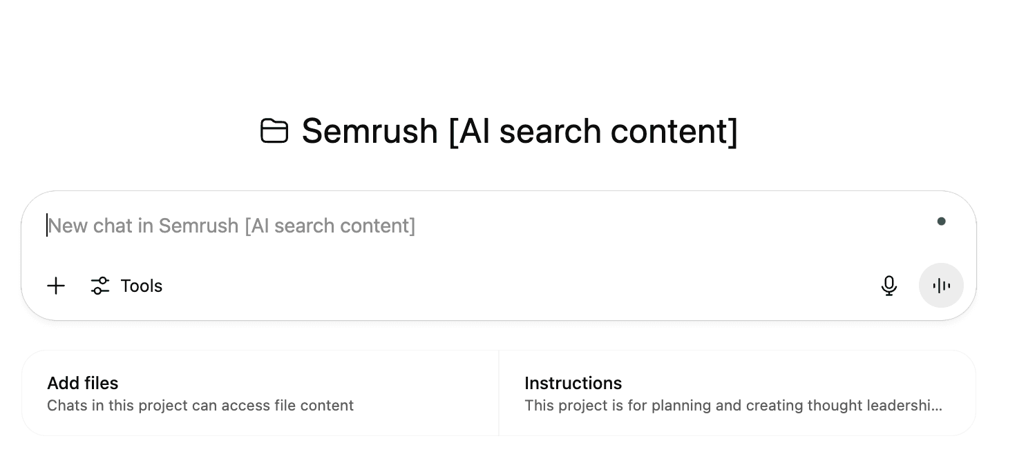 For instance, I’ve set up specialized projects in Claude and ChatGPT for each type of long-form content I work on — each with its own guidelines and best practices.