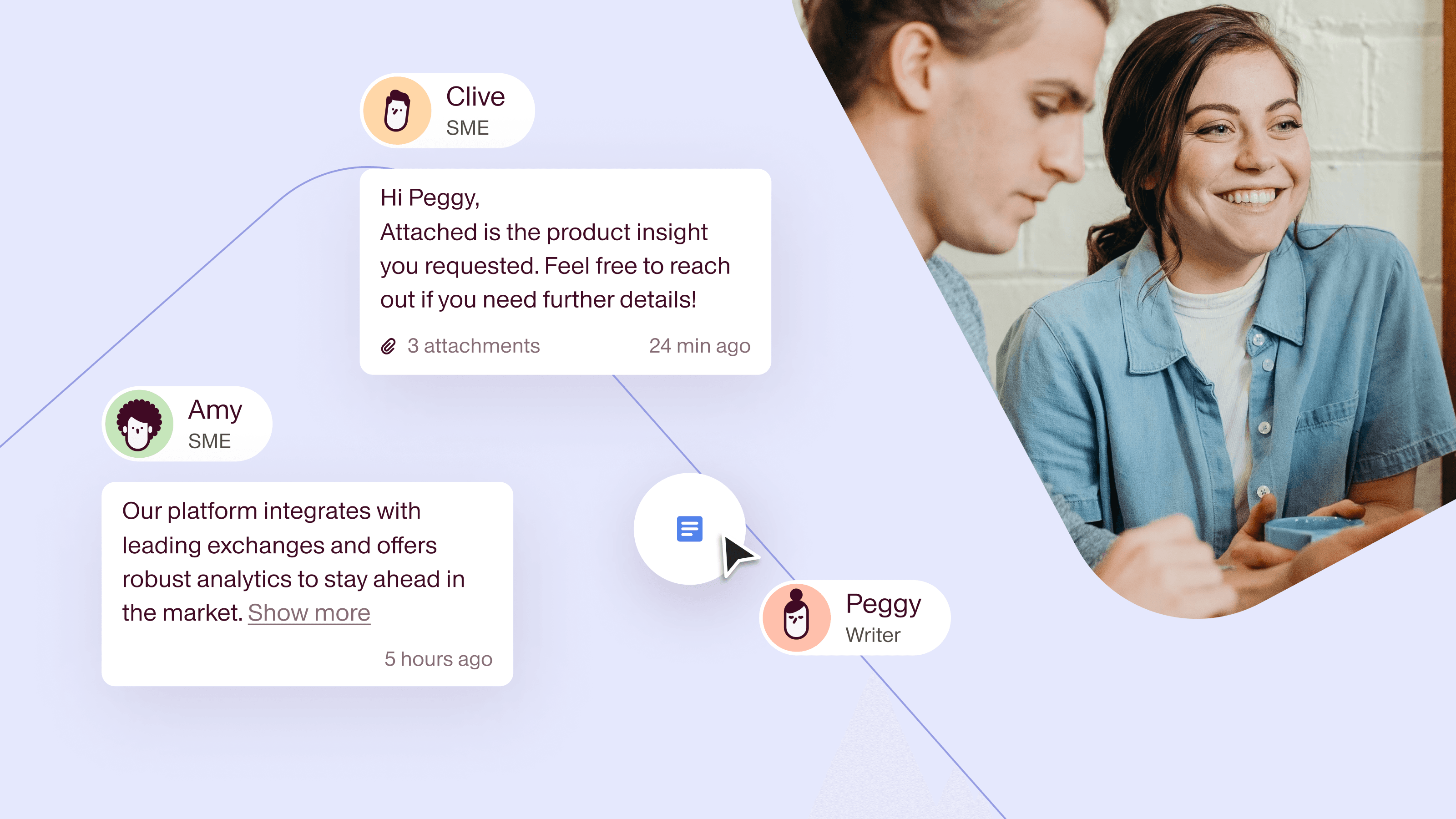 Can’t get them on a call? Use transcripts of internal presentations or product updates as a starting point and ask for their review. Short on time? Give them a draft to look over and add their final touches.