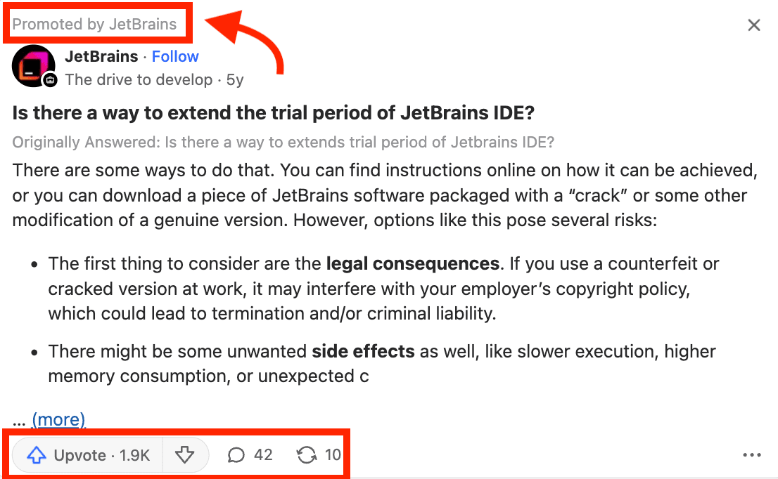 For instance, detailed, well-argumented answers like the one below tend to generate more organic engagement: