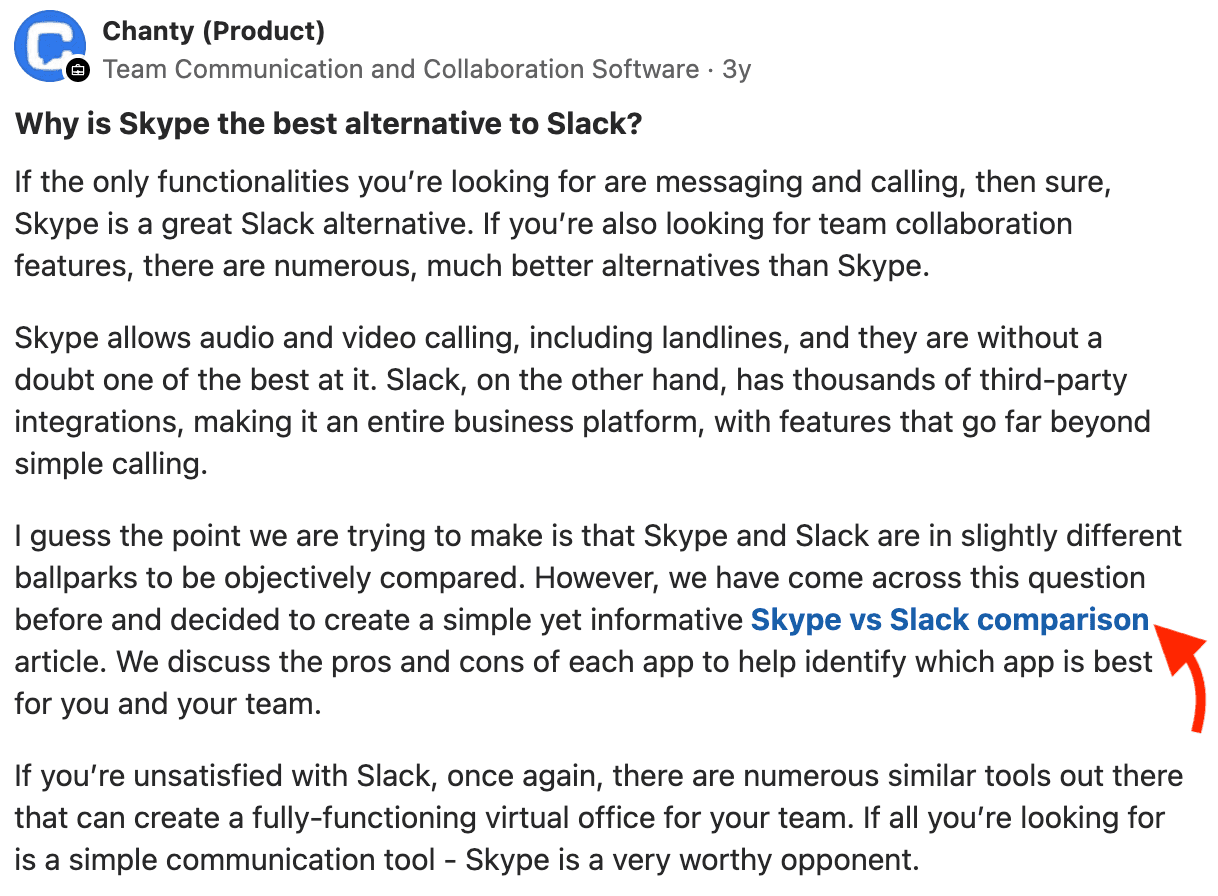 For instance, your existing comparison pages or product-focused articles can be great sources for answering product-related questions:
