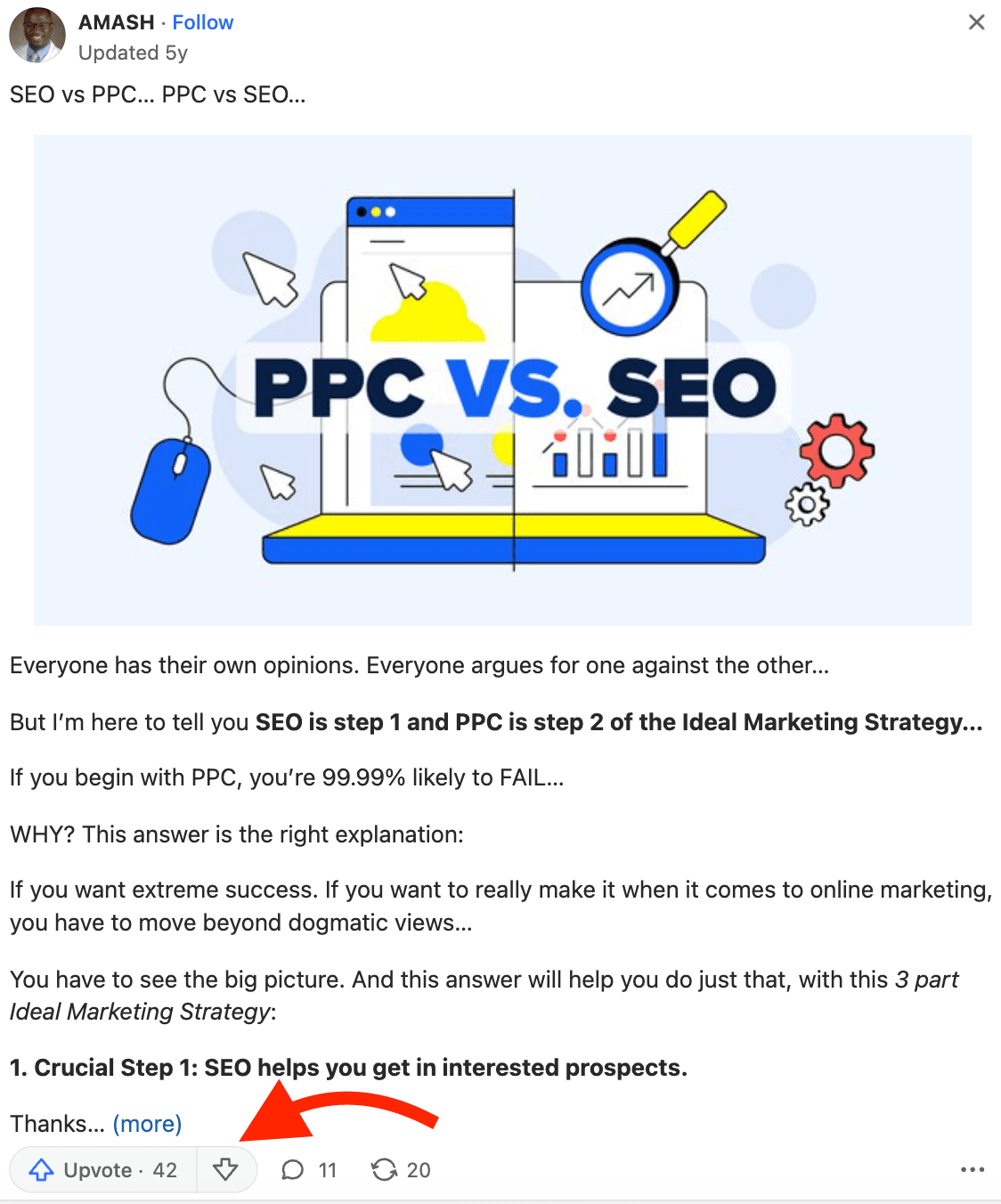 The takeaway: Create answers that invite discussion and actively engage with comments to boost visibility.