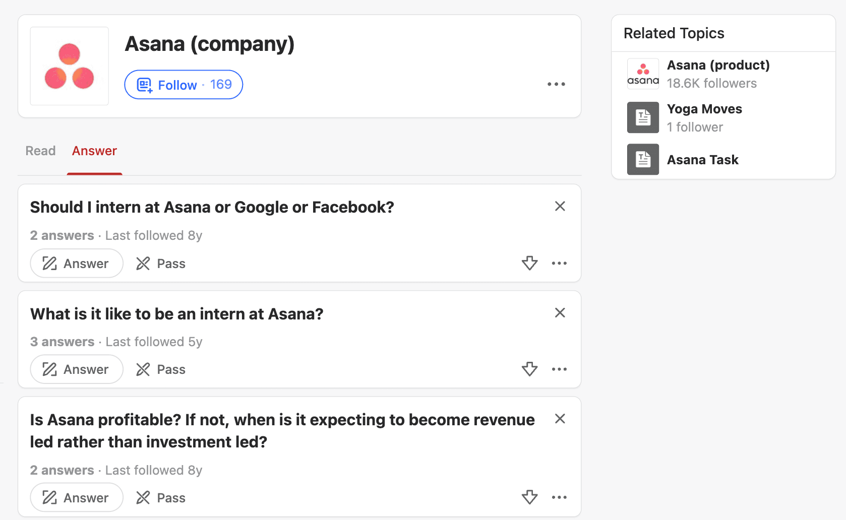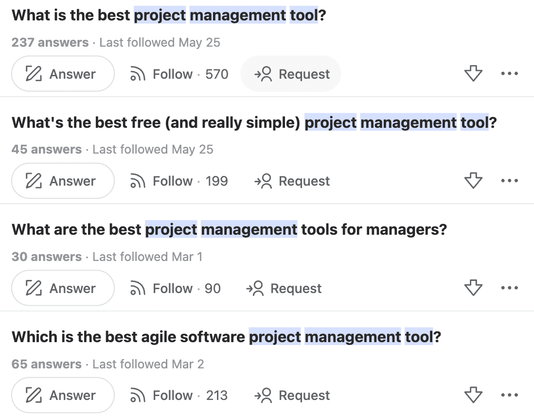 Look for opportunities that connect with your business objectives while genuinely helping Quora users — e.g., productivity-related threads for a brand like Asana.