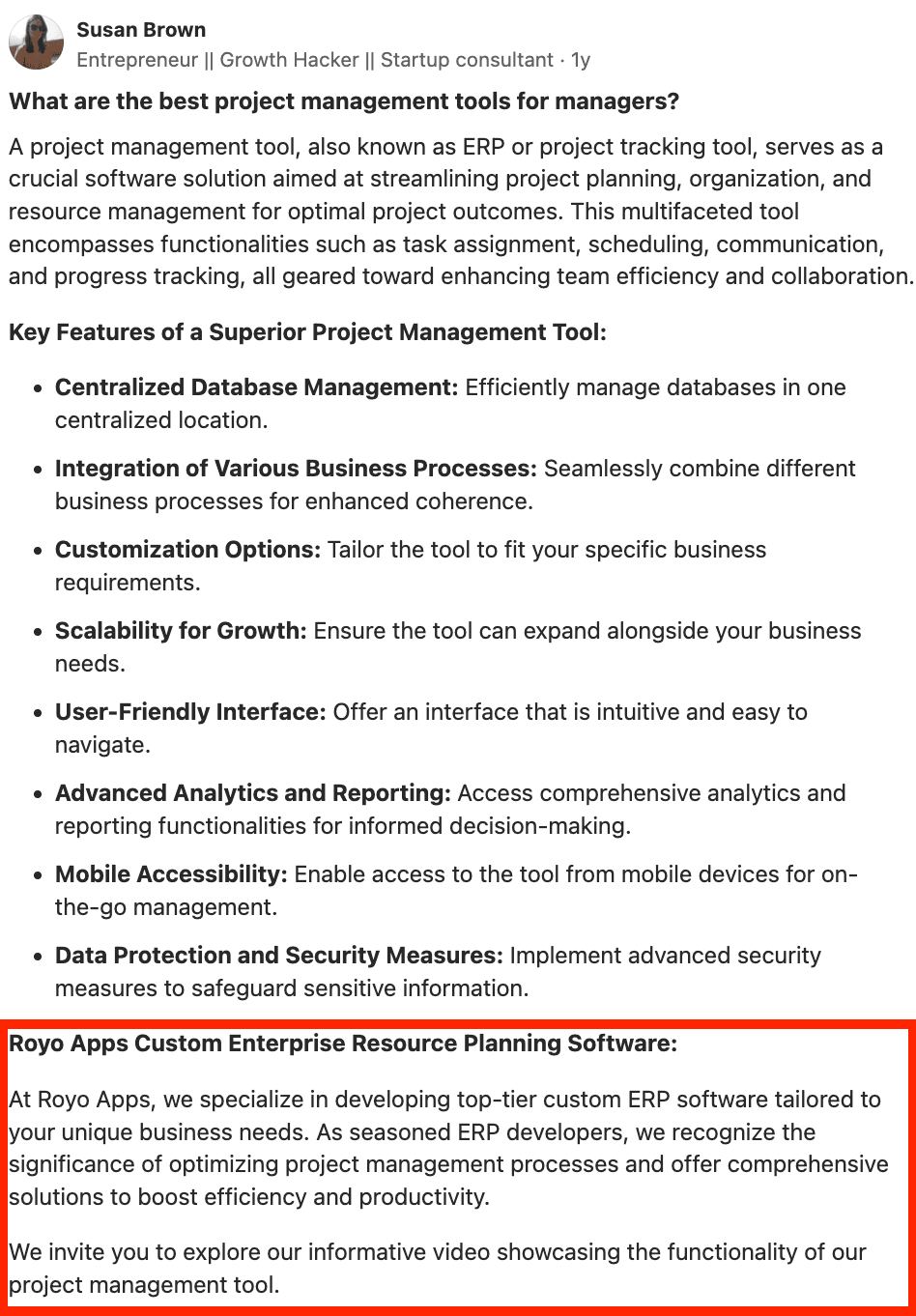 This answer is promotional without offering real value. It makes generic claims without supporting evidence and doesn't establish any credibility.