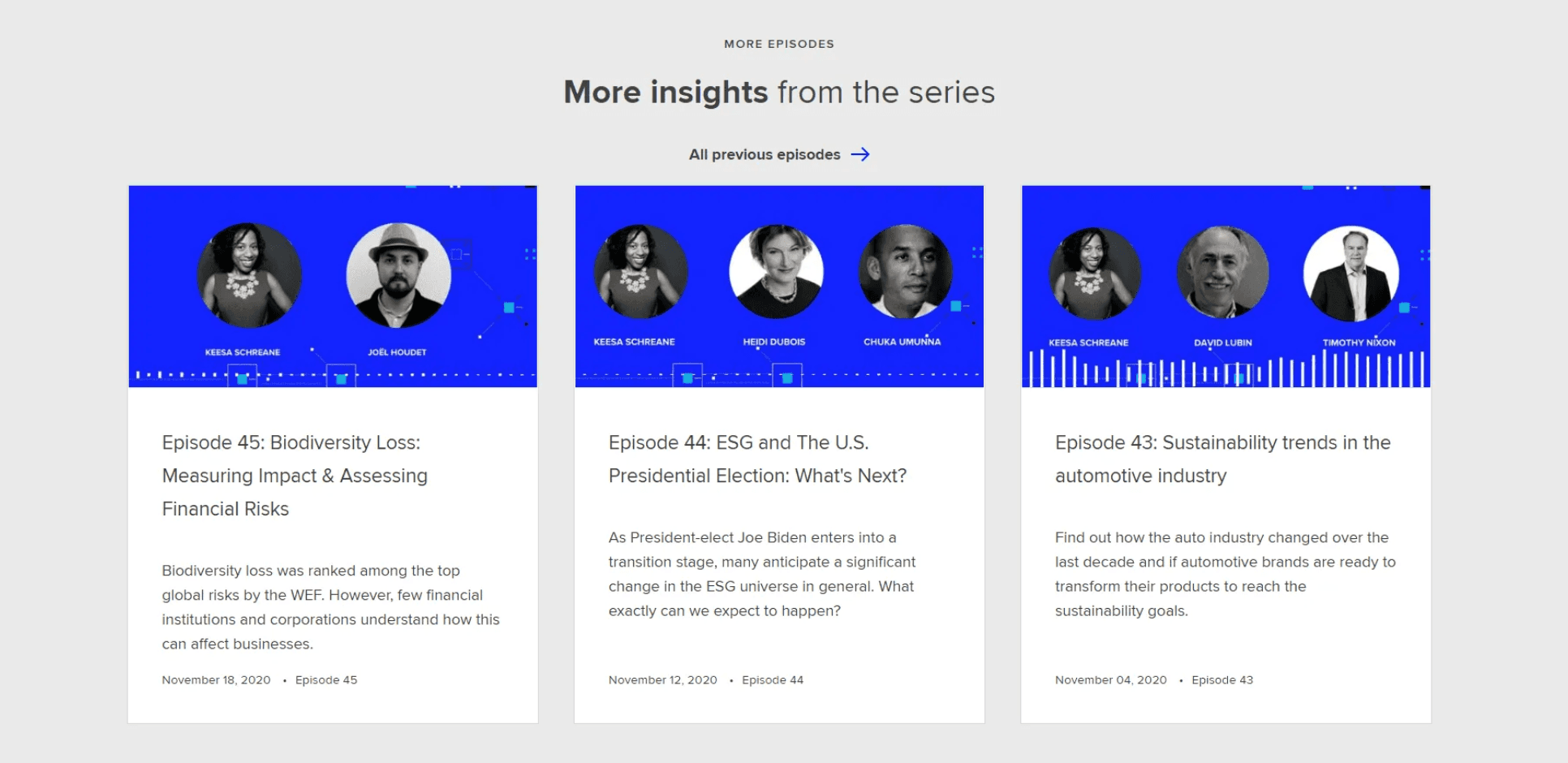 While at Refinitiv, I worked on the Sustainability Perspectives podcast, where we invited industry leaders from our target companies to share their expertise.