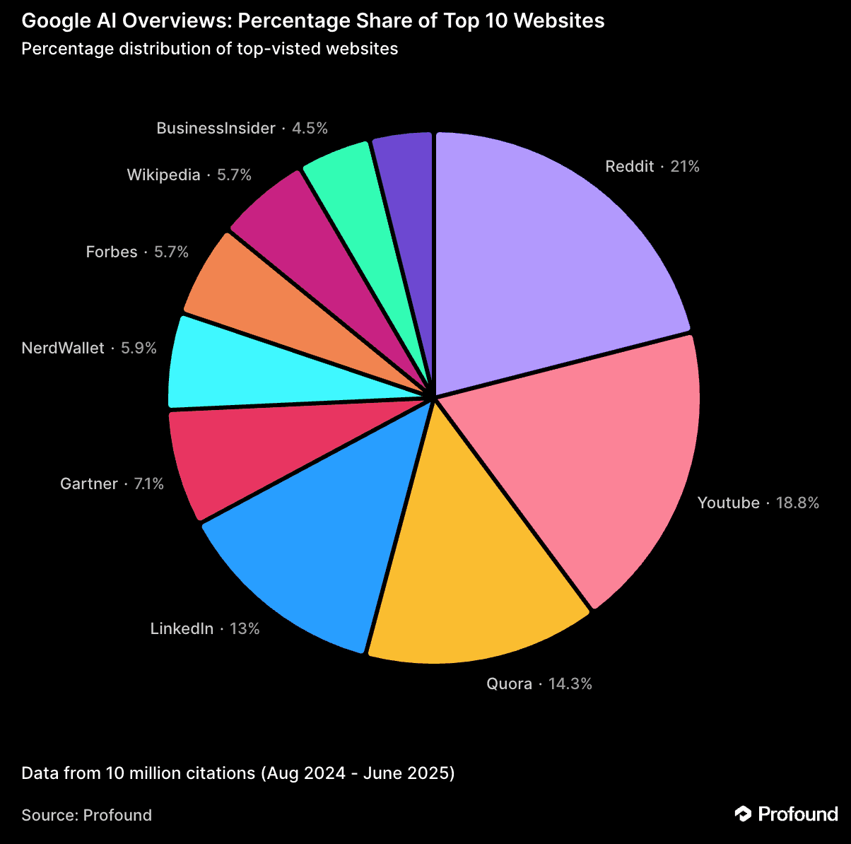 It also drives AI citations: for example, Reddit accounts for 46.7% of all Perplexity citations.