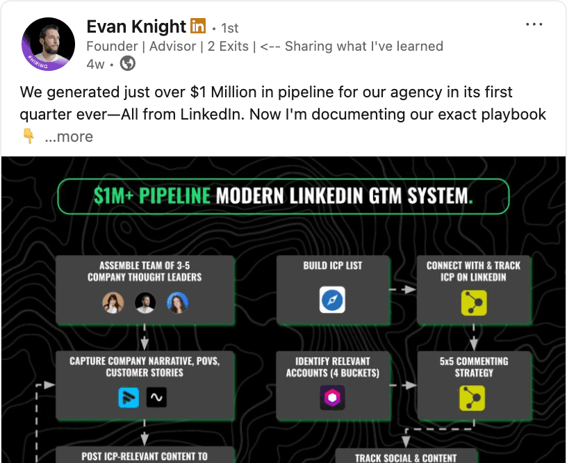 Just look at how Evan Knight talks about generating over $1 million in pipeline for his agency through LinkedIn.