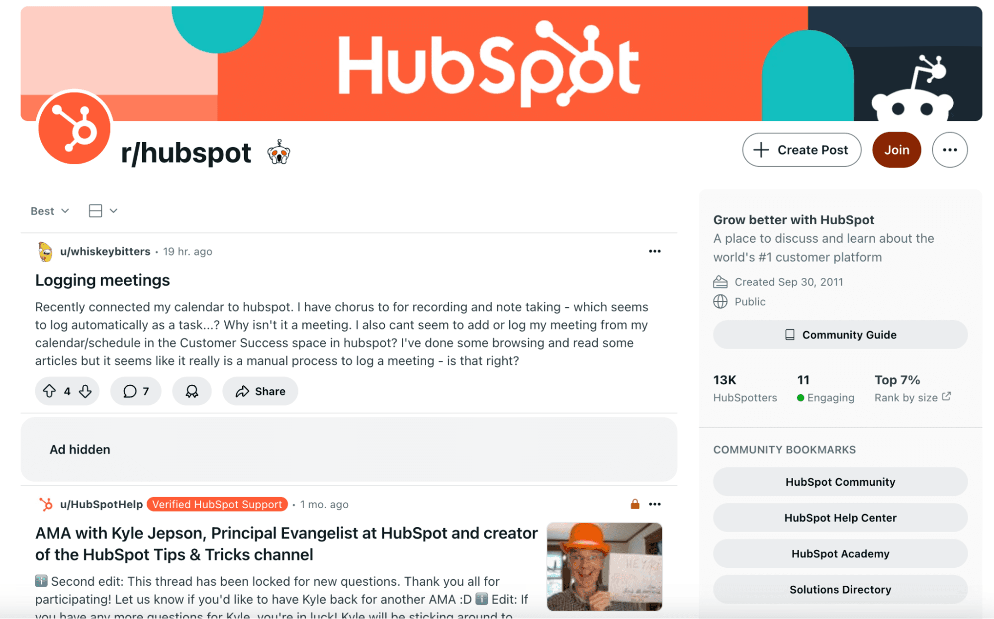 For example, HubSpot has a dedicated r/hubspot that helps them further foster their community.