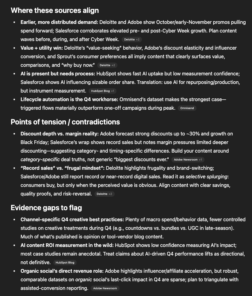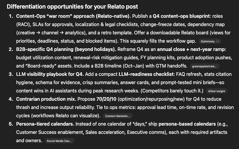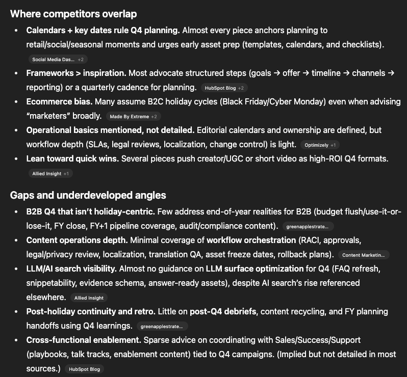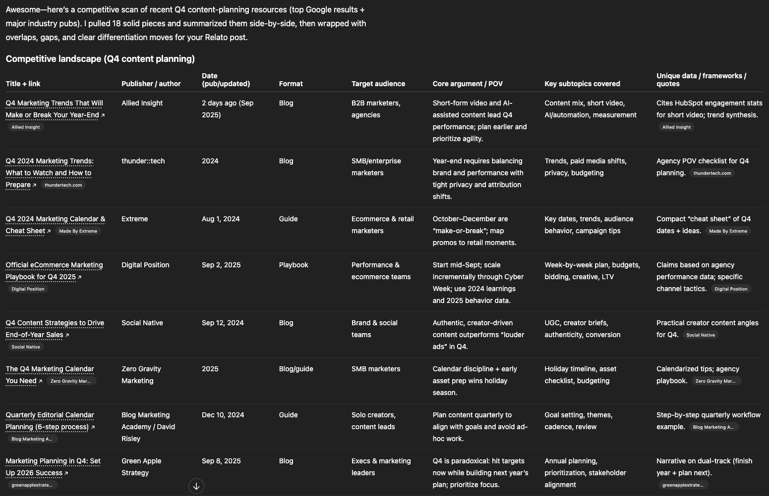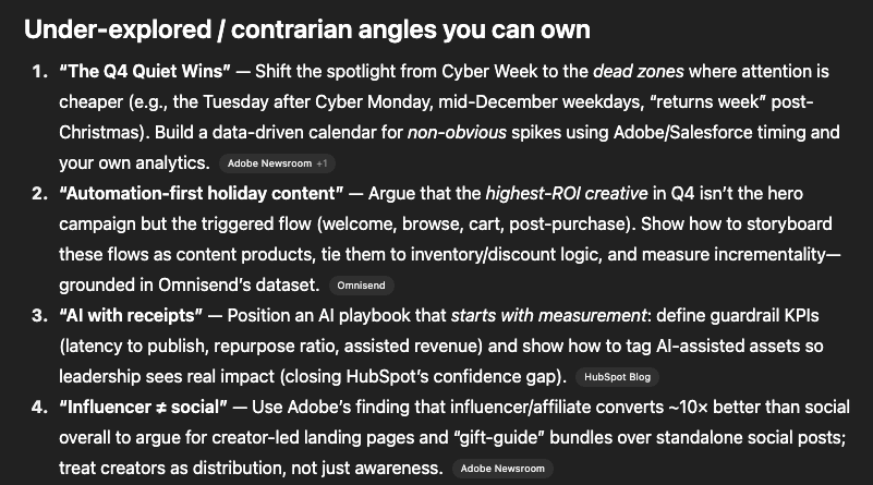 Here’s how the prompt delivered using our Q4 content planning example from earlier: